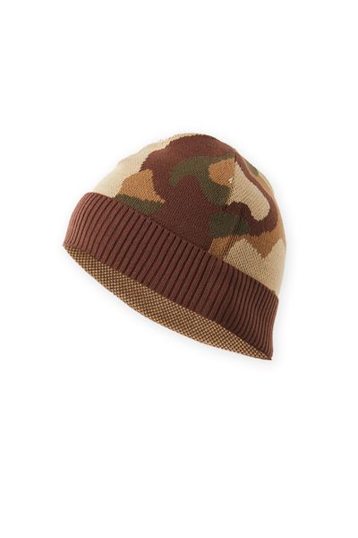 Elevate your winter style with this stylish camouflage beanie hat. Crafted for comfort and warmth, this versatile knit beanie features a classic brown and tan ribbed cuff that contrasts with the earthy, neutral-toned camo pattern. Perfect for outdoor adventures, casual weekend wear, or just adding a trendy accessory to your outfit, this soft, pull-on knit hat is a must-have. Its reversible design offers two distinct looks in one, making it a great addition to your cold-weather headwear collection. Shop this reversible camo beanie today for a comfortable and fashionable way to stay warm.